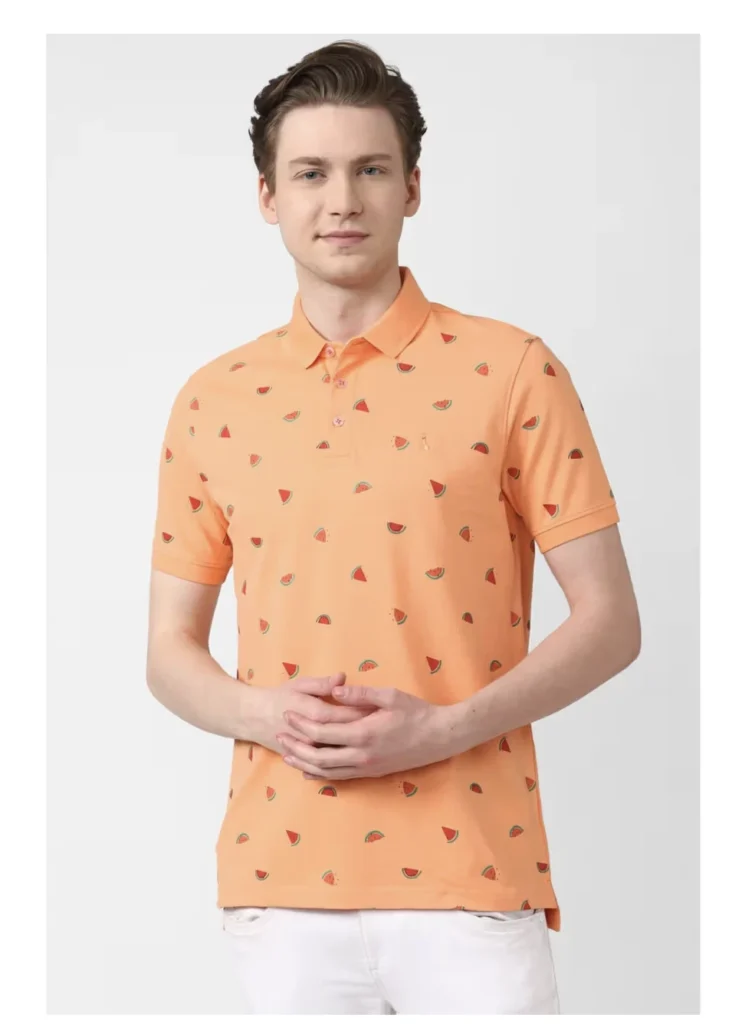 Men Orange Polo T-Shirt
